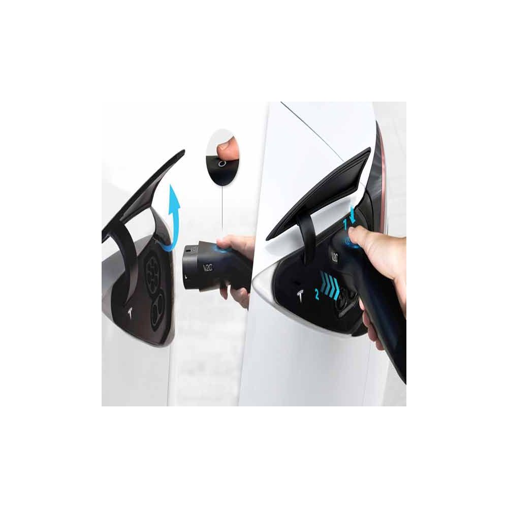 Cable de carga con botón integrado para Tesla, una solución innovadora que permite abrir el puerto de carga y desbloquear el cable directamente desde el conector, sin necesidad de utilizar la app, la llave ni acceder al interior del vehículo. Desde el propio conector, puedes abrir el puerto para iniciar la carga y desbloquear el cable una vez finalizado el proceso. Todo con un solo gesto.